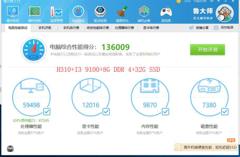 從圖片可以看出,ZC-DN-H310QH主板配酷睿I3-9100處理器搭載8G筆記本內(nèi)存32G固態(tài)硬盤(pán)跑分最總結(jié)果為136009高分;