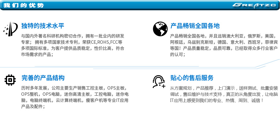 歷時多年發(fā)展,公司主要生產(chǎn)銷售工控主板,OPS主板,OPS整機,OPS電腦,迷你高清主板,工控電腦,迷你電腦,電腦終端機,云計算終端機,瘦客戶機等專業(yè)IT應用產(chǎn)品及配件;