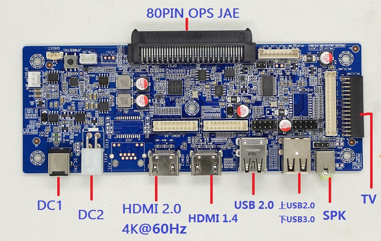 OPS子卡,也叫OPS轉(zhuǎn)接卡、OPS轉(zhuǎn)接板、OPS擴(kuò)展卡,按照 INTEL(Open Pluggable Specification)開放式可插拔規(guī)范生產(chǎn),是將OPS電腦與一體機(jī)、電視機(jī)的內(nèi)部線路進(jìn)行連接的一個(gè)橋梁,可以將一體機(jī)或電視機(jī)內(nèi)部電源,通過OPS JAE接口提供給OPS電腦主機(jī),同時(shí)將OPS電腦的HDMI、DP、Audio、USB、COM、開/關(guān)機(jī)等信號(hào)通過OPS JAE接口與觸控一體機(jī)的液晶屏驅(qū)動(dòng)板、喇叭、觸摸框、開關(guān)等部件進(jìn)行對(duì)接,通過拔插即可實(shí)現(xiàn)觸控一體機(jī)、液晶電視機(jī)與OPS電腦主機(jī)之間連接使用!